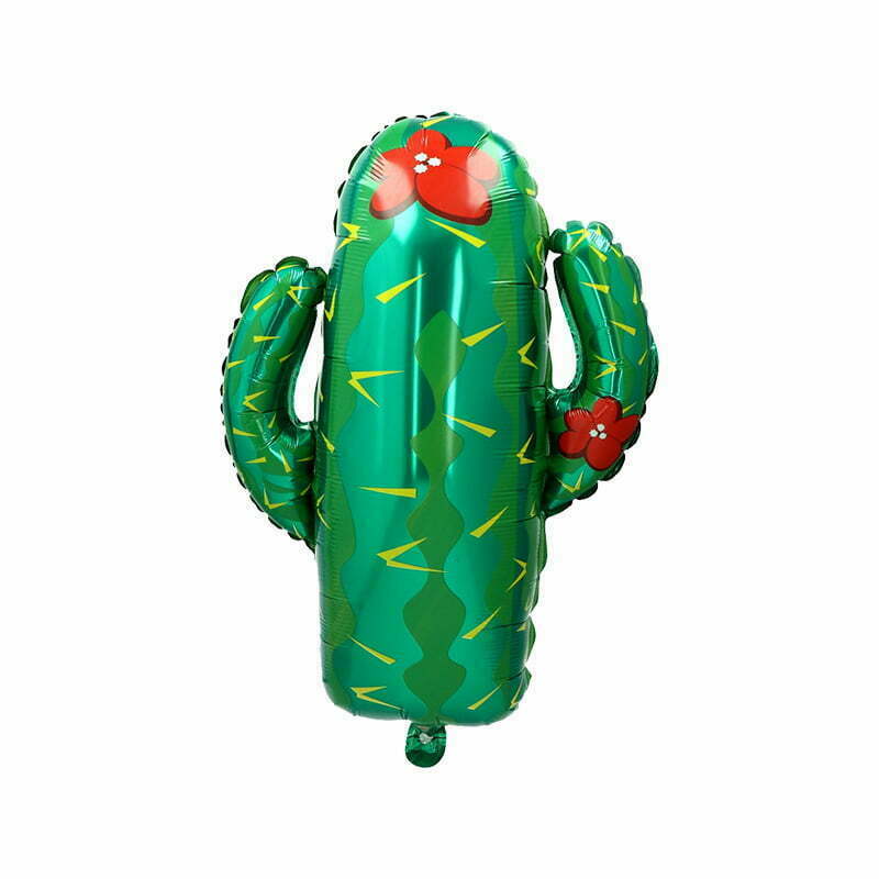 A foil balloon in the shape of a cactus, perfect for a birthday tropical party.